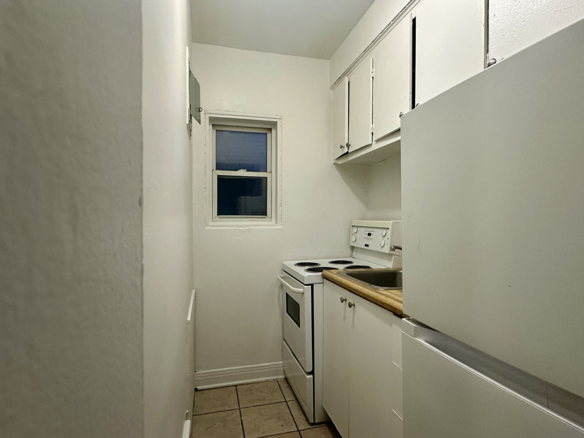 Entièrement rénové et baigné de lumière naturelle, ce studio séduit par son plancher de bois chaleureux et sa grande fenêtre, créant une atmosphère lumineuse et accueillante. La cuisine compacte et fonctionnelle est équipée d’armoires blanches, d’un four et d’un frigo, tandis que la salle de bains moderne dispose d’une baignoire, de céramique élégante et d’une fenêtre assurant une bonne aération.