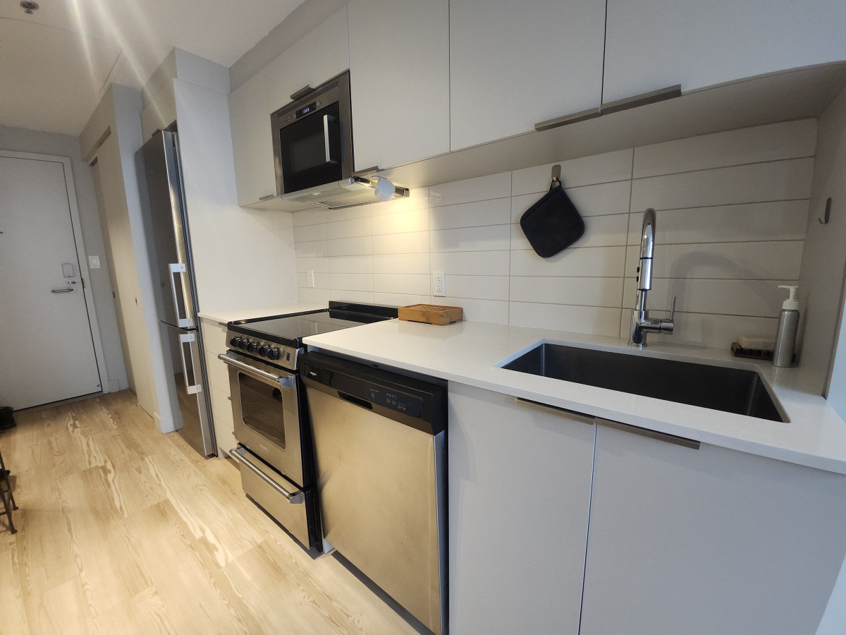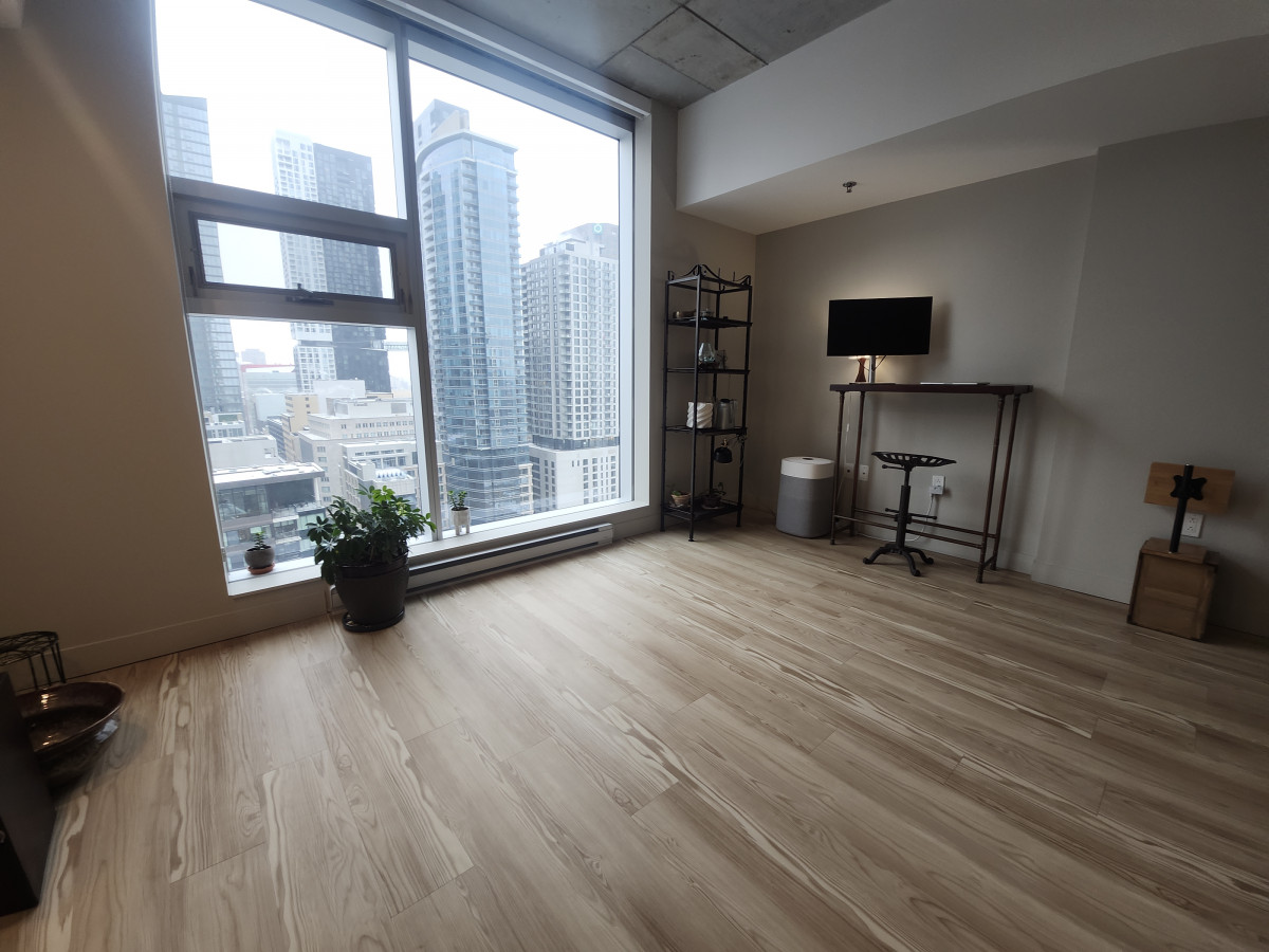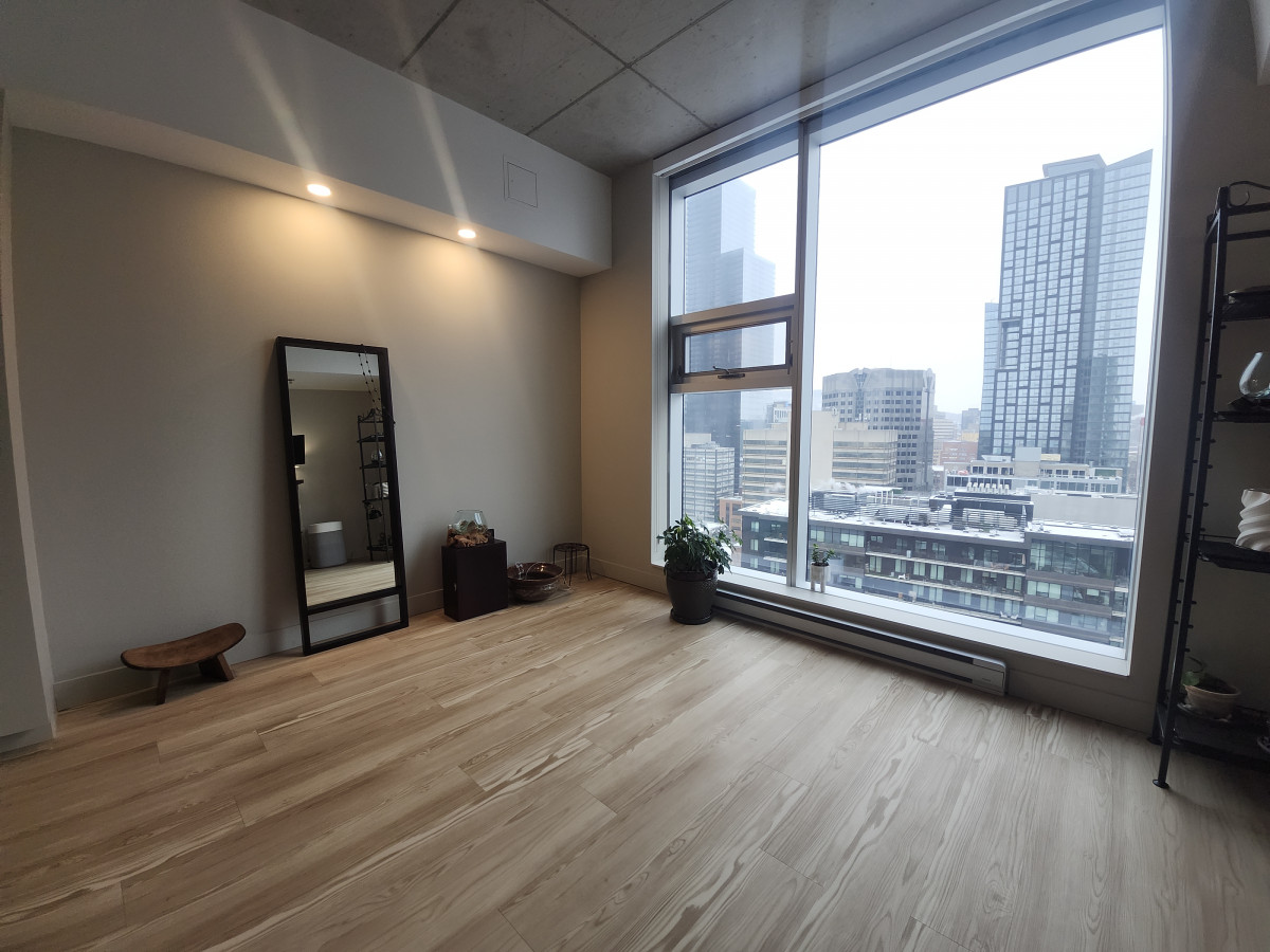 Découvrez ce studio loft moderne à louer, situé au 1020 rue Bleury, en plein cœur du centre-ville de Montréal. Offrant environ 500 pi² d’espace à aire ouverte, ce logement séduit par son design contemporain, ses plafonds hauts et ses grandes fenêtres qui inondent l’espace de lumière naturelle, créant une atmosphère à la fois élégante et chaleureuse.